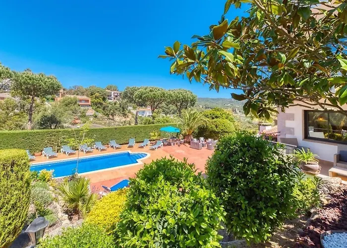 Costacabana - Villa Jaruco dysponuje tarasem z widokiem na ogród, 25 min jazdy od lotniska Girona-Costa Brava. Willa oferuje pole golfowe i ogród, a Park wodny WaterWorld jest w zaledwie 1 km.